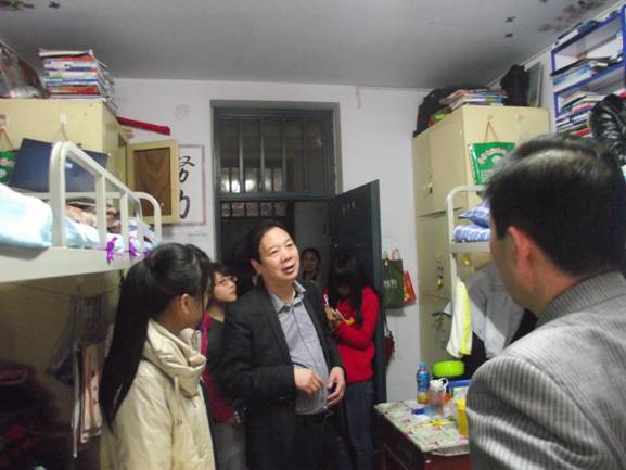 阎院长首先来到E-12女生宿舍楼对卫生、安全、用电和基础设施情况进行了调研。在调研过程中,领导与同学们亲切地进行交谈,征求同学们对宿舍建设和改进方面的建议。随后,阎院长带队进入学校食堂查看。领导们采取随机询问就餐同学的方式,听取了学生提出食堂存在的问题及对食堂改善服务的建议,阎院长亲自到各个窗口询问了饭菜的价格,并与食堂负责人进行了深入的交流并提出了一些改进意见。
