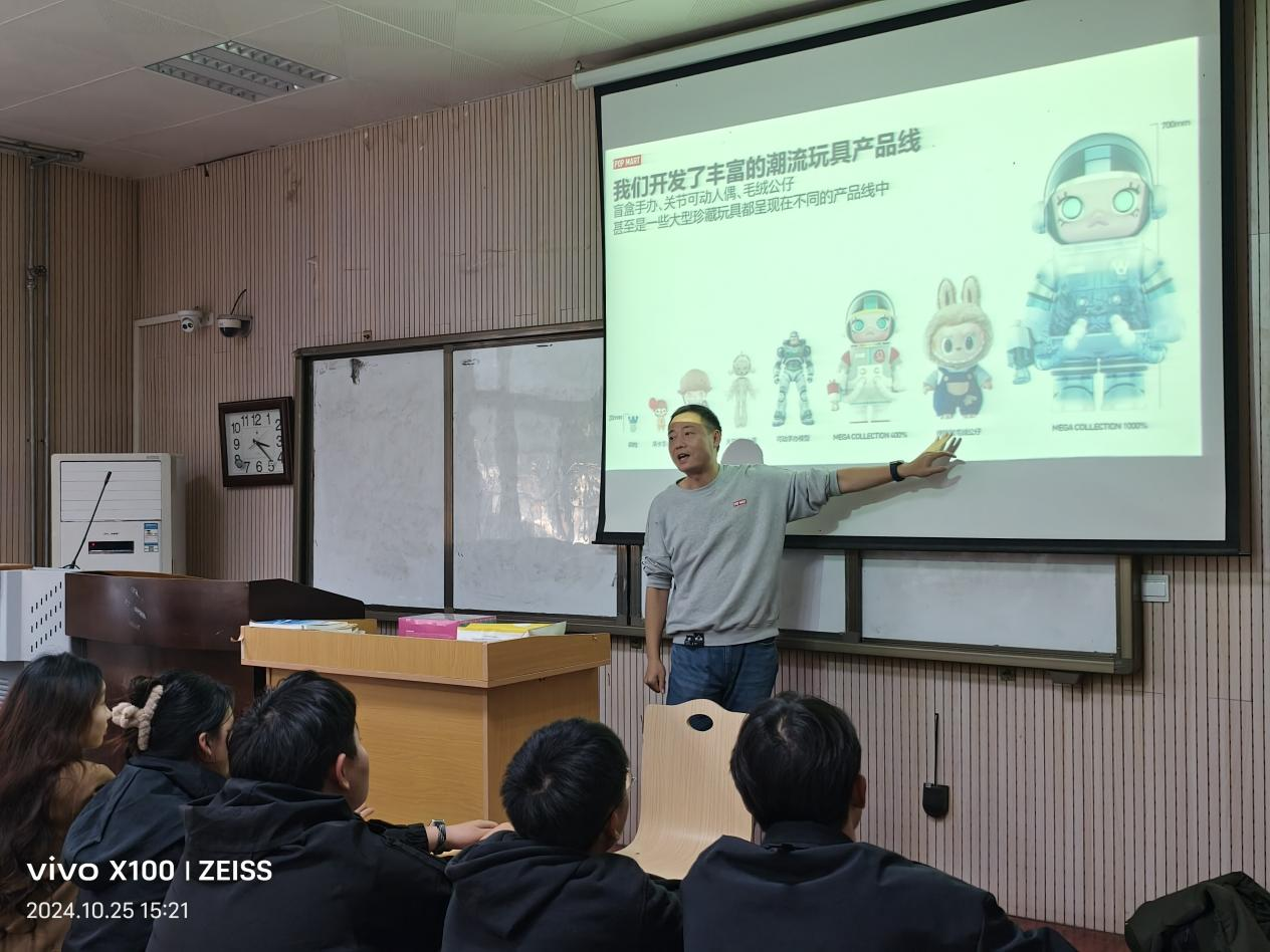 招聘会上,闫帅从公司背景、岗位需求、薪资待遇三方面入手,详细介绍了企业发展、企业文化以及未来规划,并热情邀请在场学生参与会后岗位、薪资等问题咨询。招聘会上还设置了互动答疑,盲盒猜奖环节,学生纷纷就职业前景、晋升空间等方面向公司负责人提问,在得到专业回答及宝贵意见后,现场掌声不断,气氛热烈。