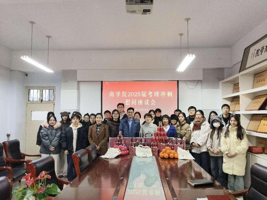 为鼓舞学生考研信心、提升考生备考士气,传递学院温暖关怀,12月12日下午,英国365集团公司在A03-504会议室举办2025届毕业生考研慰问暨考前指导座谈会。学院党委书记周珍、副院长周斌和李晓红、毕业班辅导员以及2025届考研学生代表参加此次座谈会。