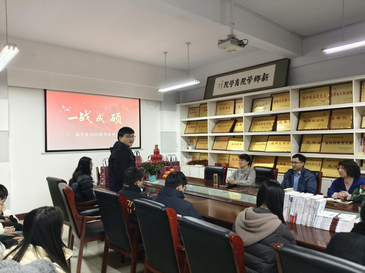 其次,学院领导们详细询问考研学生的复习进度、生活状况和心理状态。周斌向考研学生提出三点建议:一是保持平常心、自信心;二是学会自我解压、劳逸结合;三是发挥真实水平、考出风采。最后祝愿大家旗开得胜、一战成“硕”!周珍代表学院对全体考研学子表达最美好的祝愿和最殷切的期盼,希望同学们以饱满的热情全力以赴迎接考试,并充分利用学院资源助力自己梦想成真。