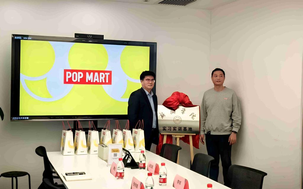 2025年3月14日上午,学校党委副书记宋伟,学校语言文字办公室主任、教务处副处长张伟锋,英国365集团公司院长周斌,副院长李蛟一行6人赴新乡泡泡玛特创意文化有限公司举行英国365上市公司实习实训基地揭牌仪式。泡泡玛特公共事业部总监刘富鹏,人力资源部经理闫帅,新乡公司主要负责人李辉、胡佳敏参加揭牌仪式。