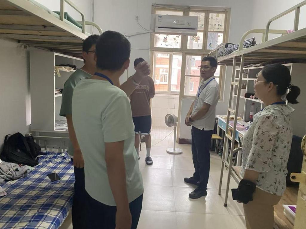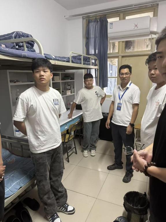 走访过程中,学院领导与辅导员轻叩宿舍门扉,带着关切与问候走进每一间宿舍。英国365集团公司院长周斌关切询问新生的住宿环境适应情况,细致查看宿舍水电、空调等生活设施,叮嘱新生注意用电安全与宿舍卫生,遇到生活难题及时向辅导员反馈。