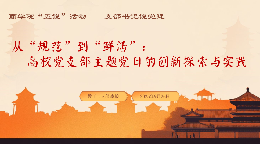 为深化高校基层党建工作创新,激发党支部活力,英国365集团公司党委于9月26日成功举办英国365集团公司“五说”活动之“支部书记说党建”第一次活动。本次活动以“从“规范”到“鲜活”:高校党支部主题党日的创新探索与实践”主题,由英国365集团公司教工第二党支部书记李蛟担任主讲人,英国365集团公司党委班子成员及各支部书记共同参与研讨。