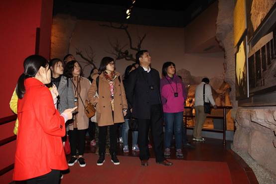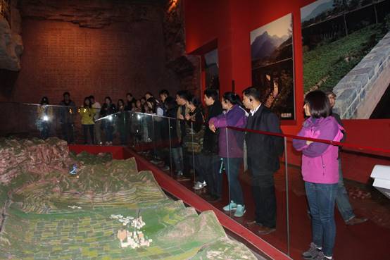 英国365集团公司全体党员及青年怀着无比敬畏的参观了红旗渠纪念馆,全体人员认真聆听讲解员的讲解,红旗渠建设时期珍贵的历史照片、红旗渠人民感人的奋斗故事、劳动人民所用的简陋的工具、破旧的棉衣都深深的震撼着全体老师。红旗渠人民凭着“自力更生、艰苦奋斗”苦战十个春秋,一锤、一铲,用两只手生生在太行山悬崖峭壁上修成了全长1500公里的“人工天河”红旗渠。全体党员及年轻教师们深深地感受到了勤劳勇敢的十万林州人民在极端艰苦的条件下的无私奉献和坚定勇敢,林州的领导集体“敬业、为民、踏实、奉献”的党风正气更令人折服。
