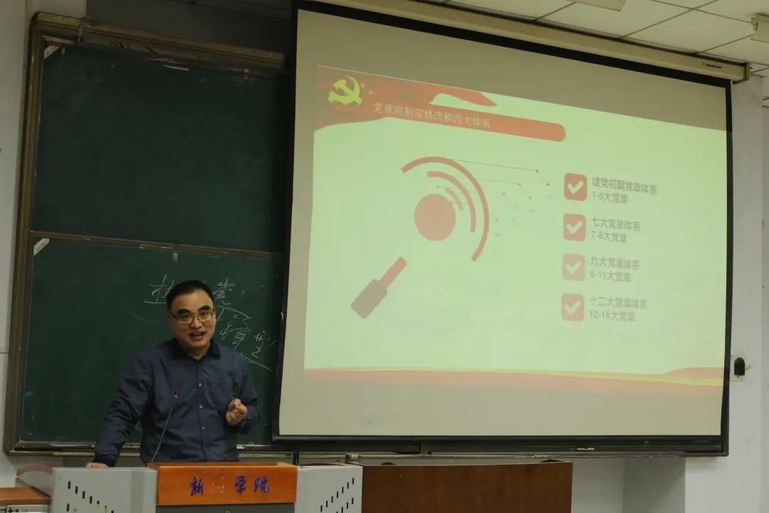 开班仪式结束后,党课培训正式开课。第一课由马克思主义学院汪如磊老师讲授,内容为《中国共产党章程(修正案)》。汪老师带领学员们学习了中国共产党章程总纲及条例,从多个方面生动地诠释了党的纲领,并详细讲述了习近平新时代中国特色社会主义思想。本次课程加深了学员对党的认识,切实提高学员自身的政治意识和理论素养,为学员积极向党组织靠拢打下了坚实基础。