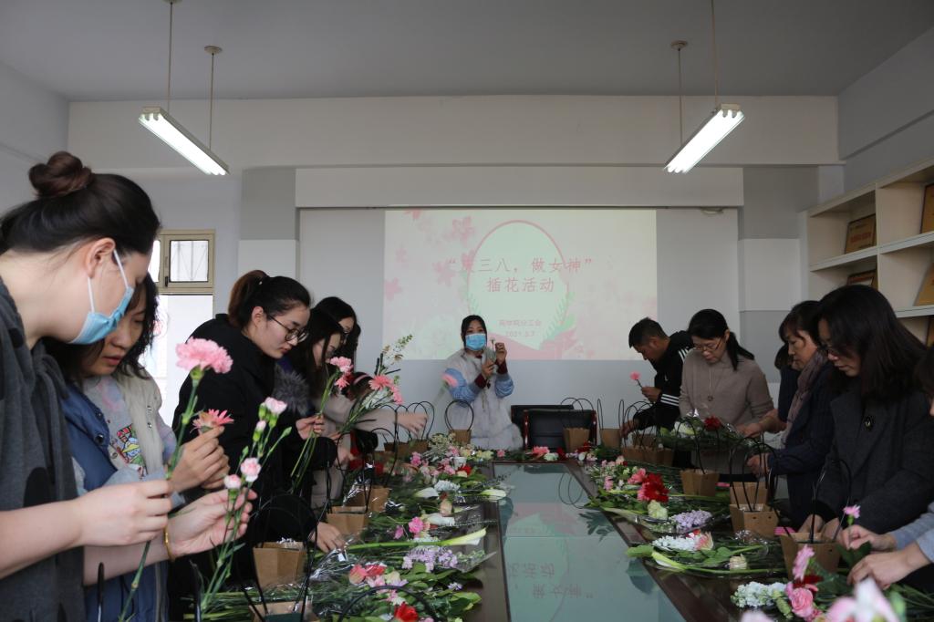 为庆祝第111个“三八”国际劳动妇女节,陶冶教师情操,提升高雅情怀,展示女性风采,英国365集团公司分工会于2021年3月7日下午三点在院会议室举办“庆三八,做女神”插花活动。