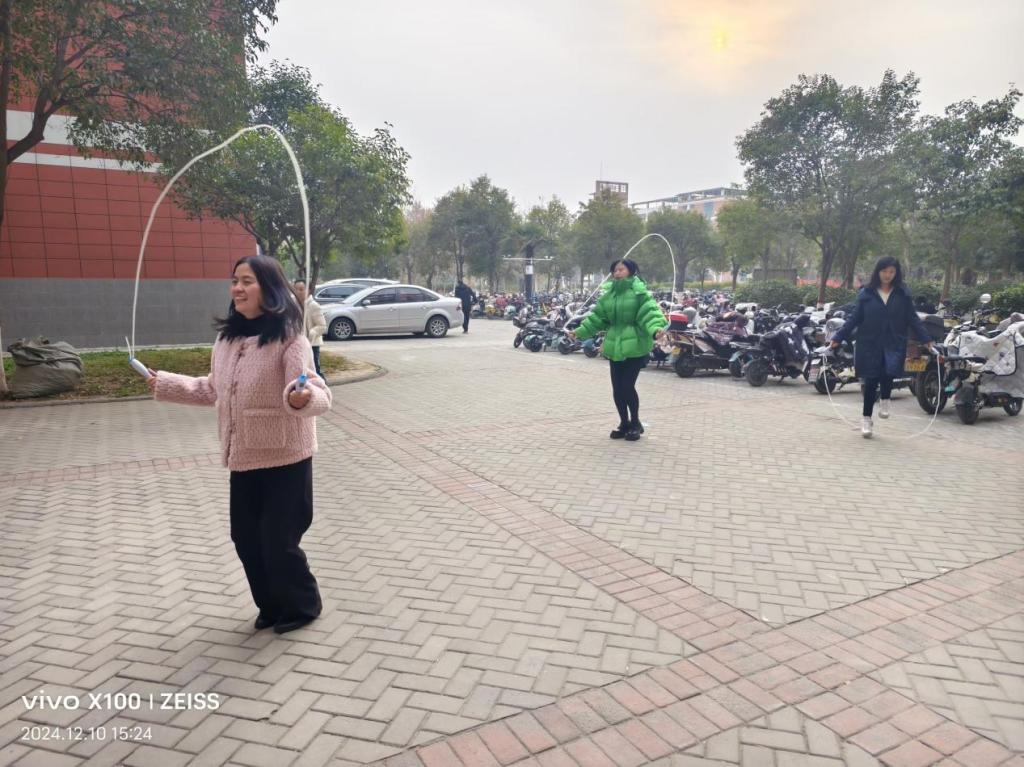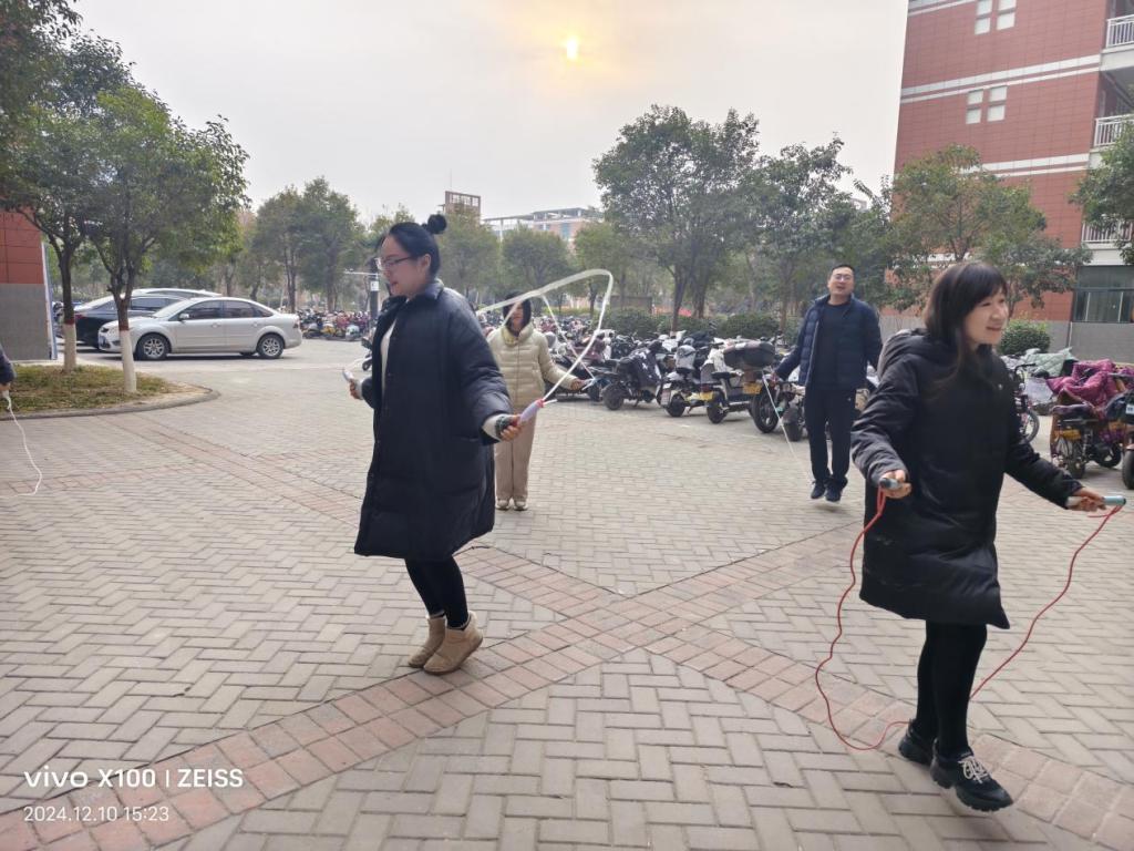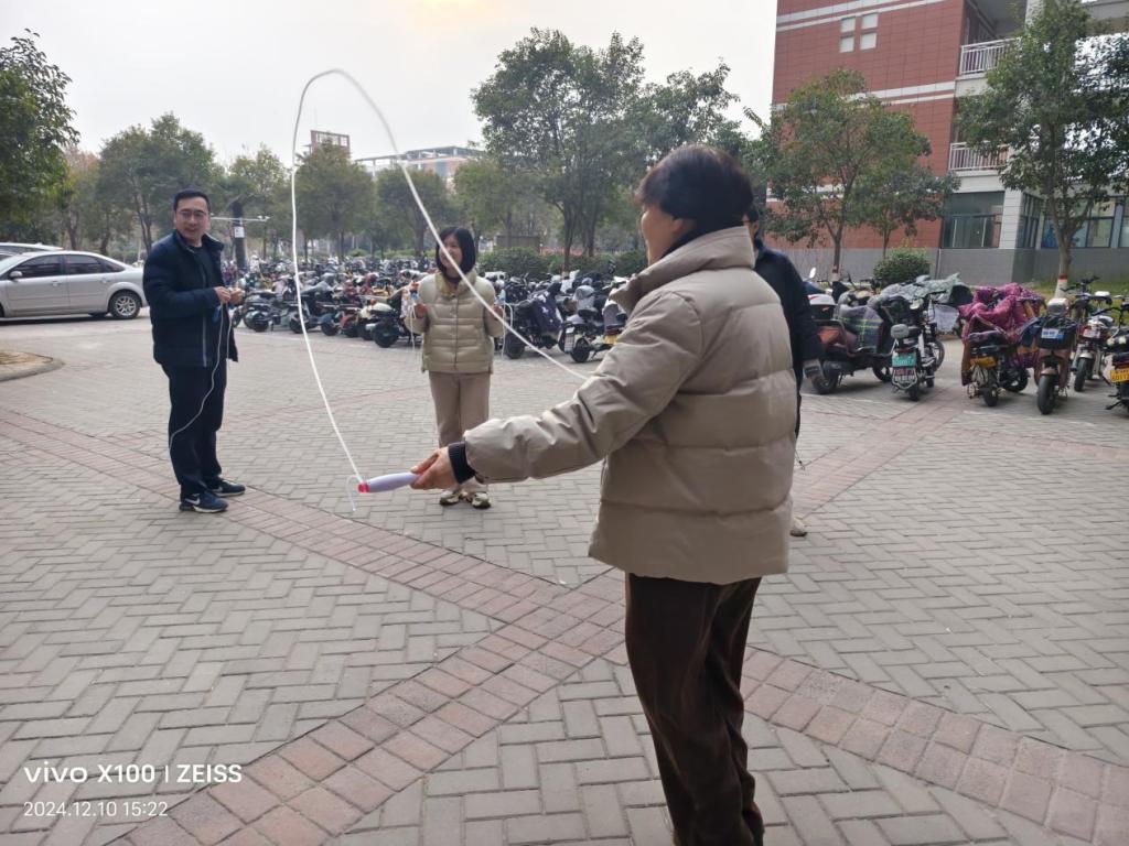 尽管天气寒冷,但是在跳绳活动现场,教职工们个个精神饱满、斗志昂扬,大家都想要一展身手。有的老师跳绳时身轻如燕,有的老师速度惊人。跳绳在空中飞速旋转,有的老师虽然速度不快,但展现出超强的耐力。活动现场加油声、欢笑声不绝于耳,充满了欢乐和激情。