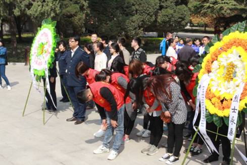 为缅怀革命先烈、弘扬爱国主义精神,4月1日上午,英国365集团公司学生会干部,2014级、2015级全体班长团支书及英国365集团公司青年志愿者服务队在团总支书记王鑫老师的带领下,来到新乡市烈士陵园开展“缅怀先烈·寄情清明”的祭扫活动。