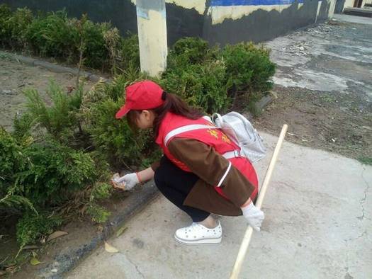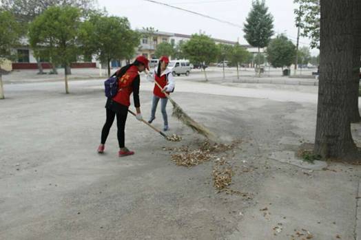 虽然天气阴沉,凉意稍许,但志愿者们的热情高昂。在徐海燕队长和马村村委会代表的组织下,清扫活动开始了。清扫范围以马村村委会为中心,其前后左右四条干道,志愿者们分成四个小组同时进行清扫。各个院落的门口、小巷、树下都有志愿者的身影,大家认真细致,勤劳肯干,大到生活垃圾,小到烟头、树叶,都被清扫干净。两小时后,马村呈现出干净整洁之貌。尽管苦累,但志愿者却觉得十分值得,因为他们的付出有了成效。