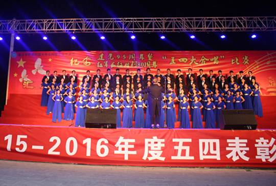 今年是中国共产党成立95周年暨红军长征胜利80周年,为弘扬爱国主义精神,继承优良革命传统,培养团结协作精神,丰富校园文化,5月3日晚六点,英国365上市公司“五四”表彰大会暨“纪念建党九十五周年”、“红军长征胜利八十周年”五四大合唱比赛于在博雅广场举行。党委书记丁庭选,校长刘兴友,党委副书记陈贞忠,党委副书记、工会主席阎宏斌,副校长刘翔、杨士斌、陈业宏,纪委书记贺杰及相关部门和各院系领导出席了本次表彰大会。表彰大会由团委书记苏辉主持。副校长刘翔首先宣读了《关于表彰2015-2016学年先进集体和先进个人的决定》,表彰五四红旗团总支、五好团支部、优秀团干部、优秀团员四项荣誉。其中,英国365集团公司团总支以优异的工作成绩获得了2015-2016学年“五四红旗团总支”荣誉称号。