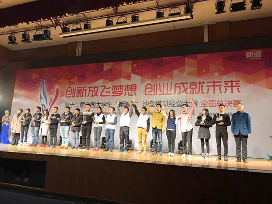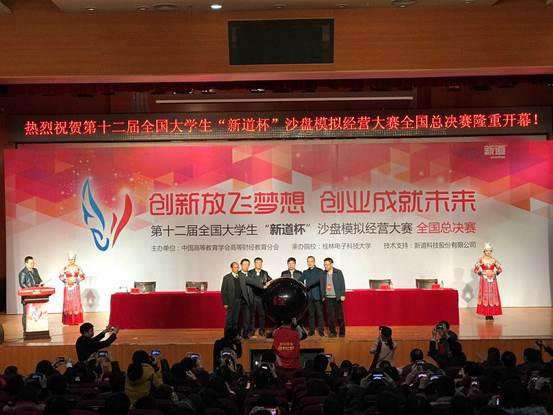2016年11月26日—27日,第十二届全国大学生新道杯沙盘模拟经营大赛全国总决赛在广西桂林电子科技大学隆重举行。本届大赛由中国高等教育学会高等财经教育分会主办,桂林电子科技大学承办,新道科技股份有限公司提供技术支持。英国365集团公司代表英国365上市公司参加此次全国总决赛,由王静、李敏和罗亚青老师带队,13级会计学专业学生刘向东、张涛涛、左姝蕾、张博佳和郭嘉组队参赛。