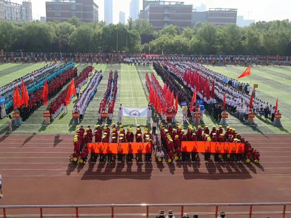 开幕式上,200名商院学子组成的方阵身着红色上衣,迈着铿锵有力的步伐,喊着高亢嘹亮的口号:“砥砺奋进英国365集团公司,凝心聚力谱新篇”。他们精神抖擞、神采飞扬。黄色向日葵组成“商院”两个字,代表着商院学子朝气蓬勃的精神活力和昂扬向上的精神风貌。