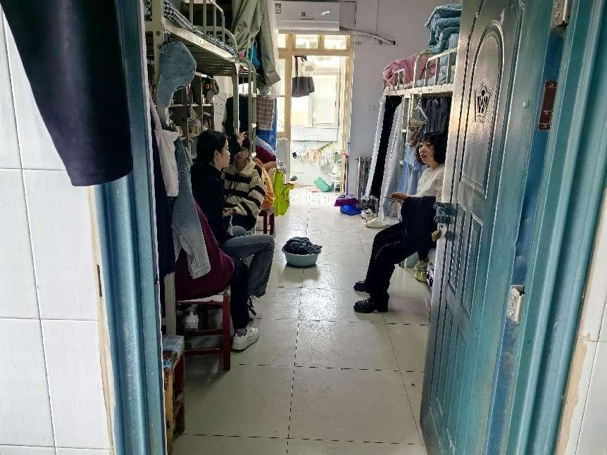 随后,班子成员各自走进结对宿舍,同宿舍里的同学面对面交流,详细了解学生的生活方面的情况,并对宿舍环境卫生和安全隐患进行了排查,强调了用电、用水安全。周珍叮嘱学生,要严格遵守学校的各项管理规定,天气转冷,要警惕消除火灾隐患,保持良好的学习和生活习惯。她勉励学生,要正确处理学习与娱乐的关系,珍惜同宿舍的缘分,融洽宿舍成员间的友谊,保持积极向上的健康心态,能够在大学四年的时光里,互帮互助,彼此共同进步,学有所成、学有所获。