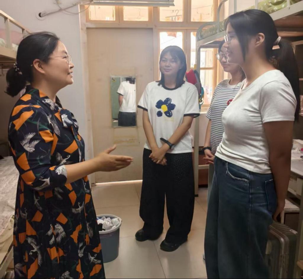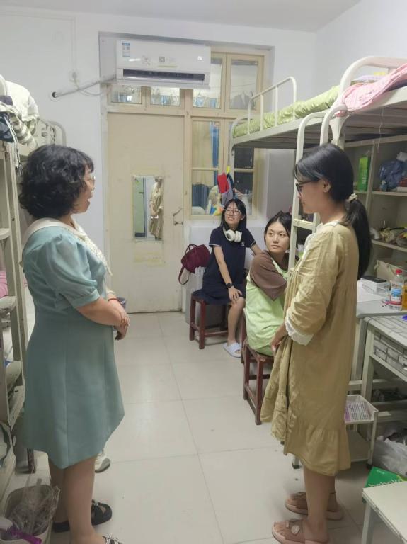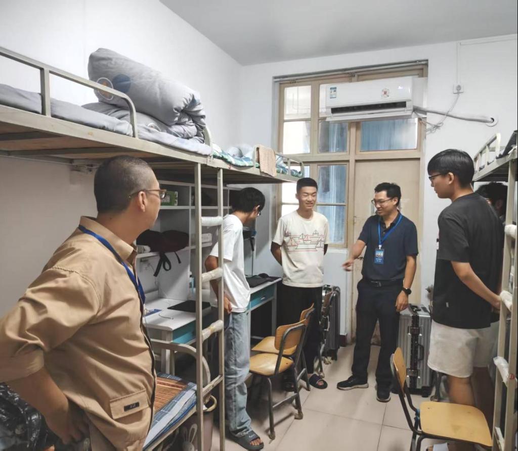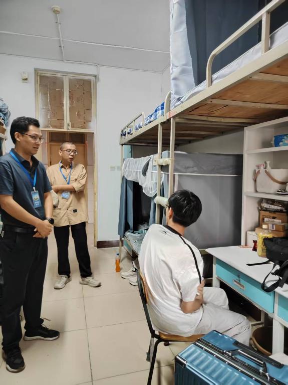 “家乡哪里?”“报到手续是否顺利?”“宿舍设施有没有需要维修?”每走进一间宿舍,学院领导都与同学们亲切交谈,详细询问入学感受、生活需求及适应状态,对空调、热水、网络、电源等配套情况进行逐一查看,确保新生入住“零障碍、零隐患”。