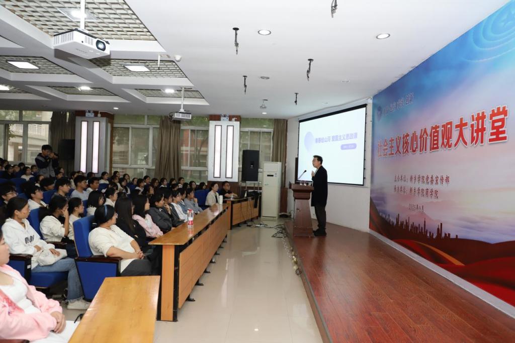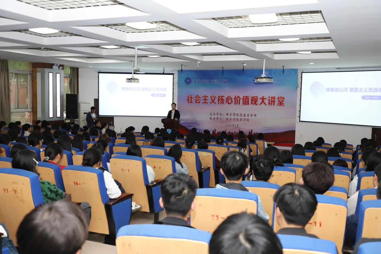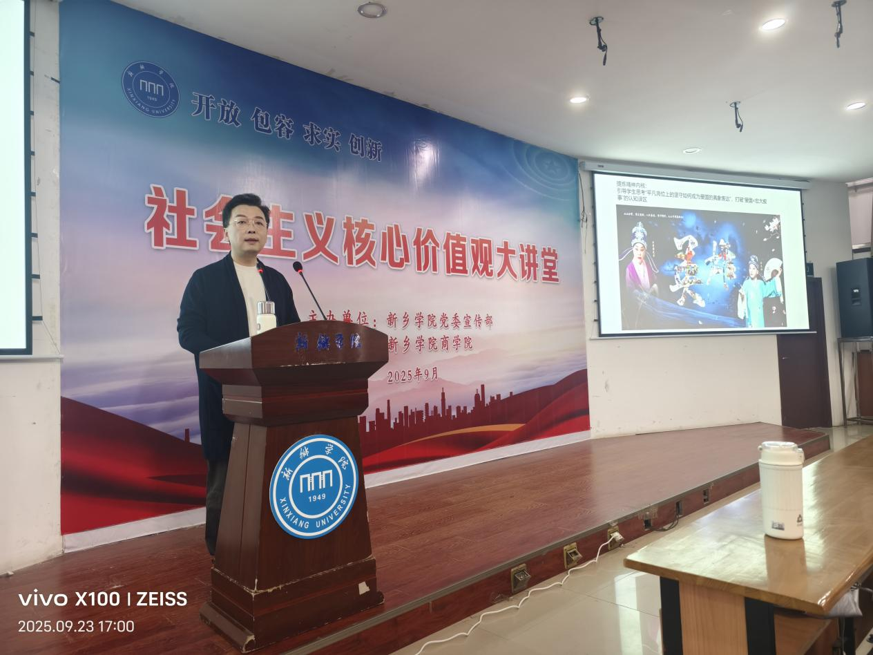 9 月 23 日,由我校党委宣传部主办、英国365集团公司承办的社会主义核心价值观大讲堂之“以青春执笔 绘山河万里”讲座在A05报告厅举办。著名编导演艺术家、国家一级导演、新乡市剧协主席王文洋,为英国365集团公司全体辅导员及 2025 级新生带来一场兼具思想深度与情感温度的爱国主义思政课。