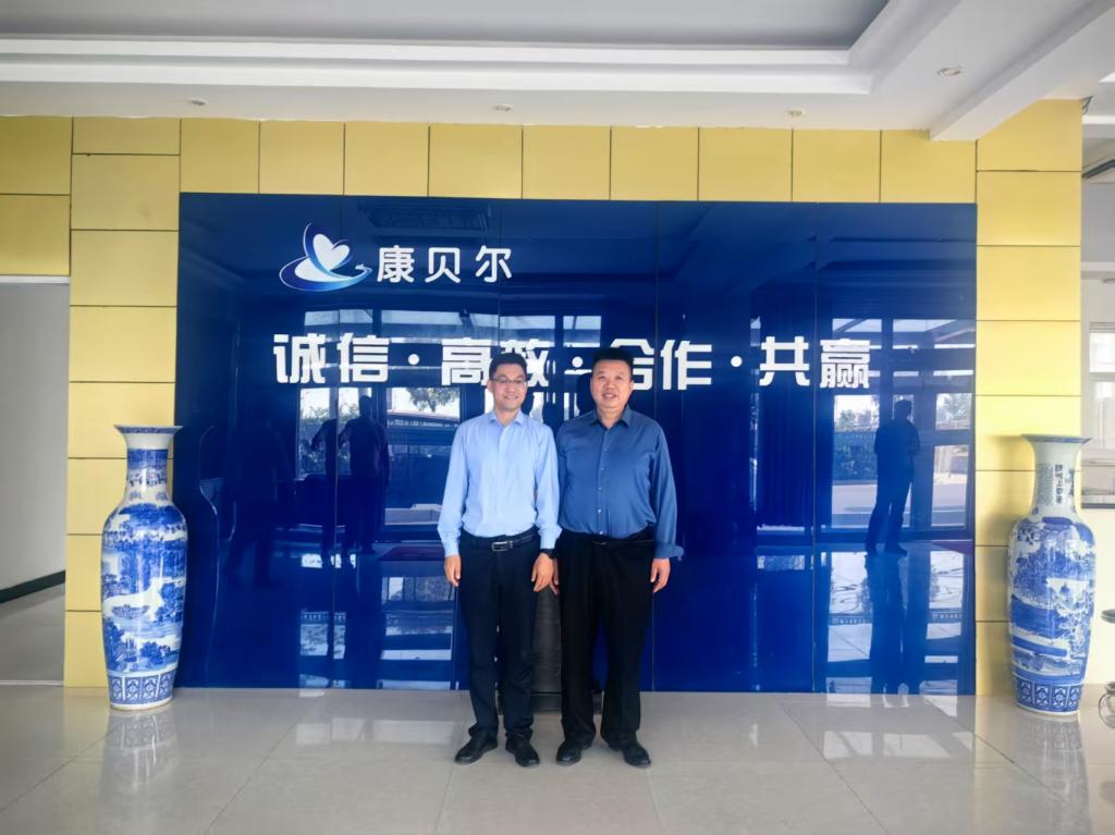 4月25日,英国365集团公司院长周斌、副院长李蛟一行5人赴新乡市康贝尔医疗科技有限公司开展访企拓岗专项活动。康贝尔公司董事长刘彦波与公司高管亲自参加活动。