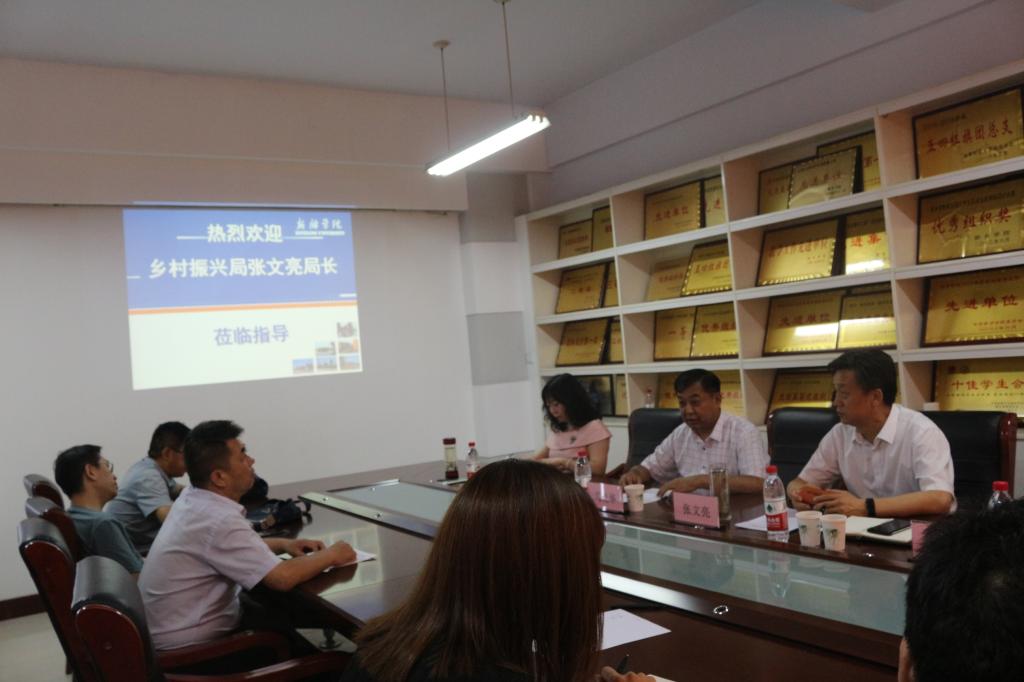 6月23日下午,新乡市乡村振兴局局长张文亮、科长董大海莅临英国365集团公司就开展乡村振兴战略合作进行了调研座谈。英国365集团公司院长马光华、副院长李晓红以及会计、电子商务、文化产业管理部分教师、学生参加了座谈会。