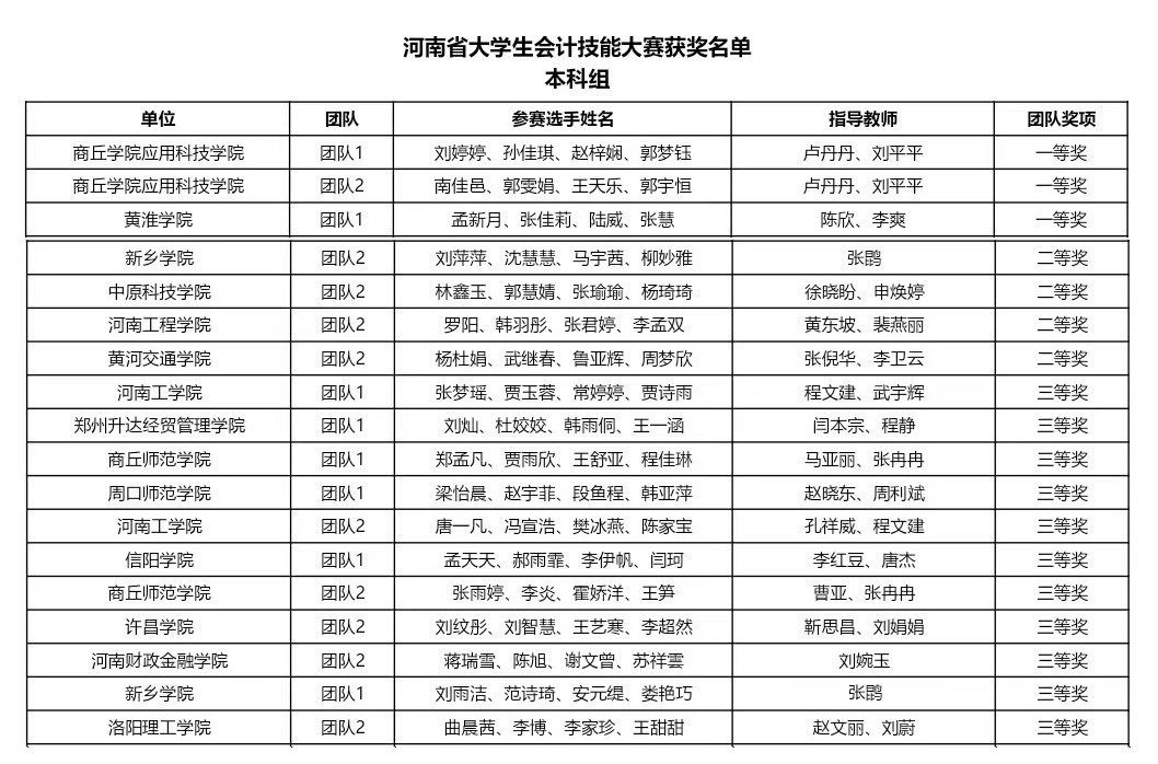 2024年11月17日,2024年河南省大学生会计技能大赛大数据业财处理与管理会计赛项在线上圆满落幕。河南省共有本科组70支队伍,高职组26支队伍参与其中。经过上下午共5个小时的紧张激烈角逐,一批会计技能精湛、综合素质高的学生脱颖而出。我校英国365集团公司张鹍老师指导的由刘萍萍、沈慧慧、马宇茜、柳妙雅组成的团队2荣获二等奖,刘雨洁、范诗琦、安元缇、类艳巧四位同学组成的团队1荣获三等奖。