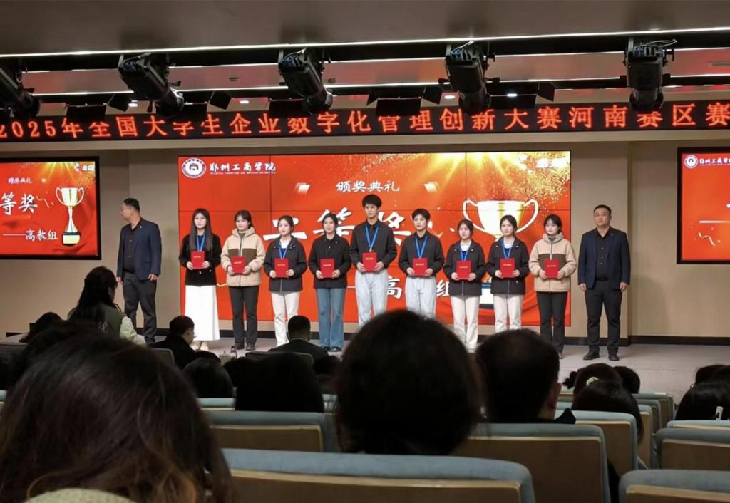 11月1日,2025年全国大学生企业数字化管理创新大赛省赛阶段在郑州圆满落幕,我院教师王灿、裴子漪、和颖、李惠指导的三支团队成功入围,旨在深化高等教育改革,推动数字经济时代下企业管理创新人才的培养。